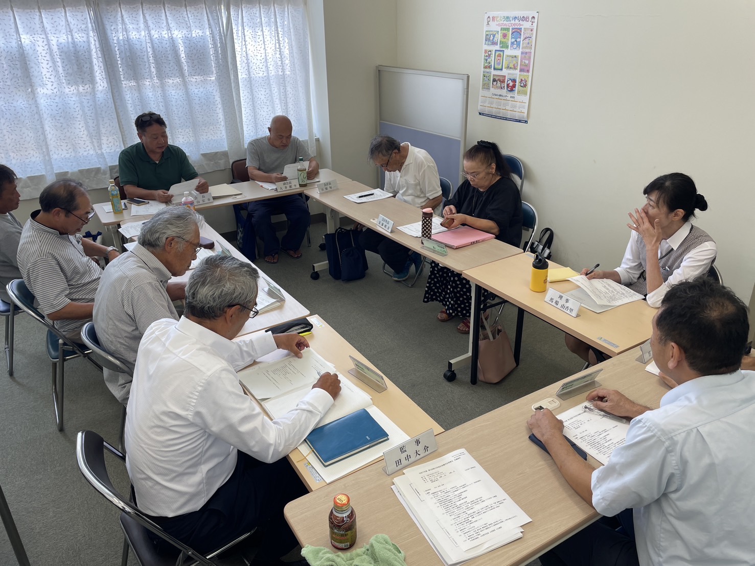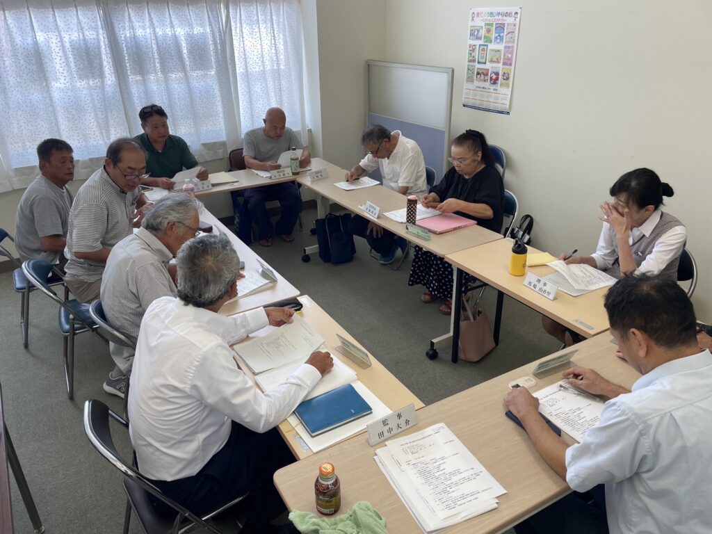 8月19日13時半より第3回理事会を開催しました。定員15名欠席者1名。